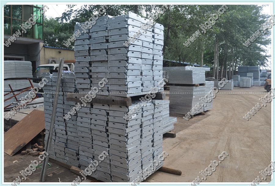 三) 剛剛進行完熱鍍鋅處理的T4踏步板。此型號踏步板螺絲固定,安裝快捷簡單。