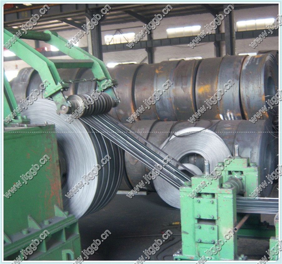 四) 下面我們先去扁鋼加工車間吧,河北久旺鋼格板廠,為了降低生產成本,引進了扁鋼縱剪機。這樣我們不光節省了生產成本,也大大地縮短了生產工期,需要什么型號扁鋼就剪什么型號。